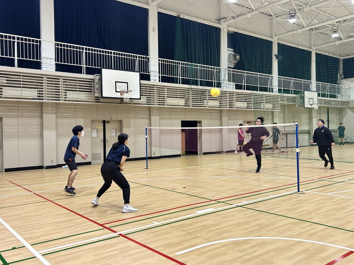 隣のコートではバトミントン部が部活をしており、部活生が「バトミントンやってるの?一緒にやろう」と声をかけてくれました。(都合により合同は叶わず)
